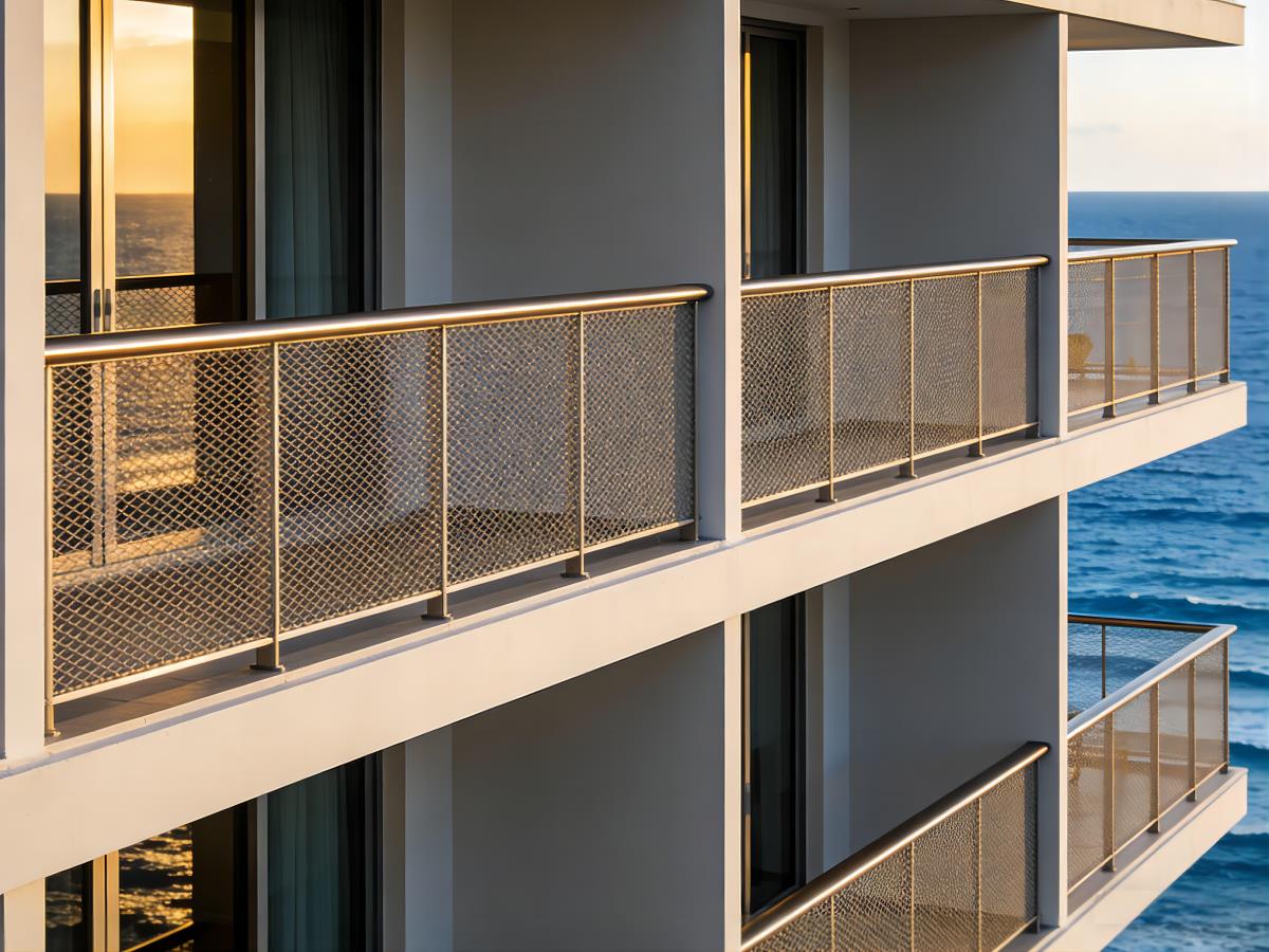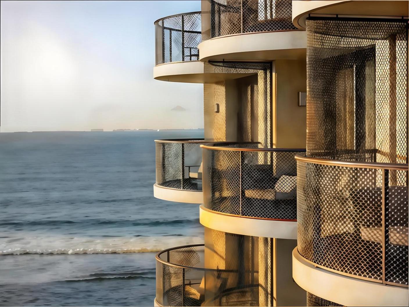 Singapore luxury apartments use mesh balcony railings that provide privacy without blocking ocean views